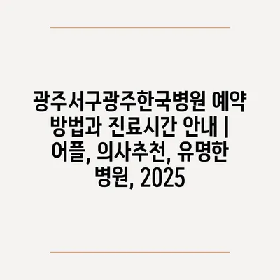 광주서구광주한국병원 예약 방법과 진료시간 공지 | 어플, 의사추천, 유명한 병원, 2025
