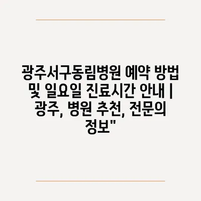 ✅ 광주서구동림병원의 진료시간과 예약 방법을 알아보세요.