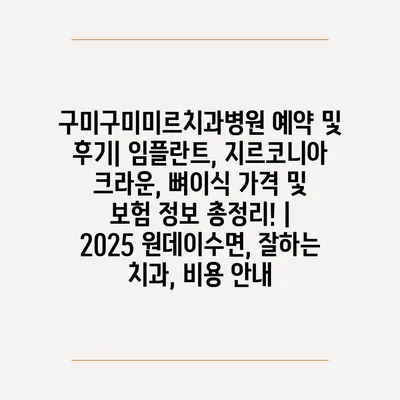 구미구미미르치과병원 예약 및 후기| 임플란트, 지르코니아 크라운, 뼈이식 가격 및 보험 정보 총정리! | 2025 원데이수면, 잘하는 치과, 비용 공지 에 대해 자주 묻는 질문 TOP 5