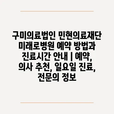 구미의료법인 민현의료재단 미래로병원 예약 방법과 진료시간 공지 | 예약, 의사 추천, 일요일 진료, 전연락 정보 에 대해 자주 묻는 질문 TOP 5
