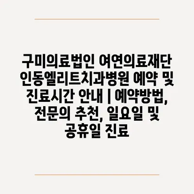 구미의료법인 여연의료재단 인동엘리트치과병원의 진료시간과 예약 방법을 자세히 알아보세요!