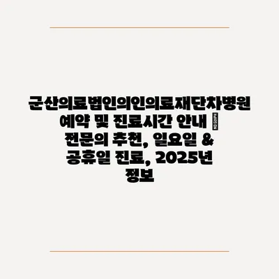 ✅ 군산의료법인 예약 방법과 진료 시간, 지금 바로 알아보세요!
