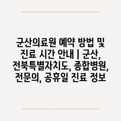 ✅ 군산의료원 예약 방법과 진료 시간을 자세히 알아보세요.