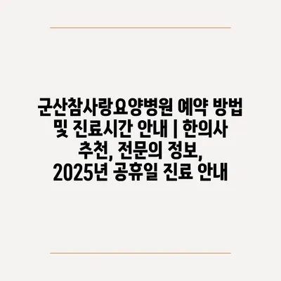 군산참사랑요양병원 예약 방법 및 진료시간 안내 | 한의사 추천, 전문의 정보, 2025년 공휴일 진료 안내