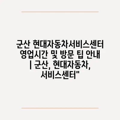 ✅ 군산 현대자동차 서비스센터의 영업시간과 예약 방법을 알아보세요.