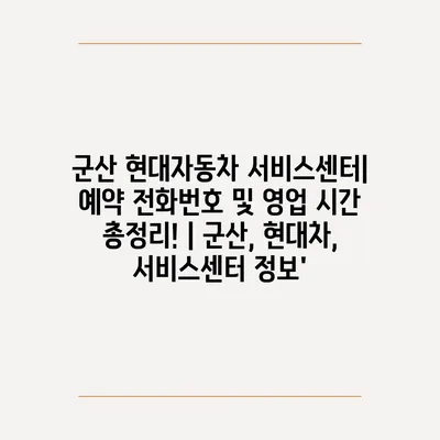 군산 현대자동차 서비스센터| 예약 전화번호 및 영업 시간 총정리! | 군산, 현대차, 서비스센터 정보’ 에 대해 자주 묻는 질문 TOP 5