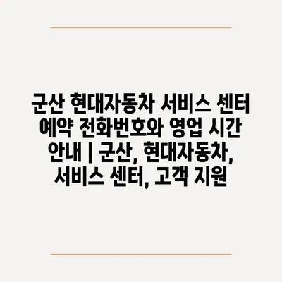 군산 현대자동차 서비스 센터 예약 전화번호와 영업 시간 공지 | 군산, 현대자동차, 서비스 센터, 고객 지원 에 대해 자주 묻는 질문 TOP 5
