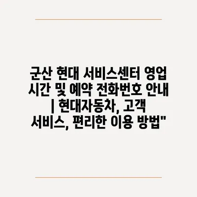✅ 군산 현대 서비스센터의 영업 시간과 예약 방법을 지금 바로 알아보세요.