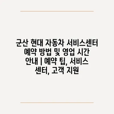 ✅ 군산 현대자동차 서비스센터의 예약 방법과 영업시간을 자세히 알아보세요.