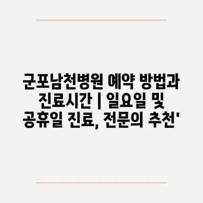 군포남천병원 예약 방법과 진료시간 | 일요일 및 공휴일 진료, 전연락 추천’ 에 대해 자주 묻는 질문 TOP 5