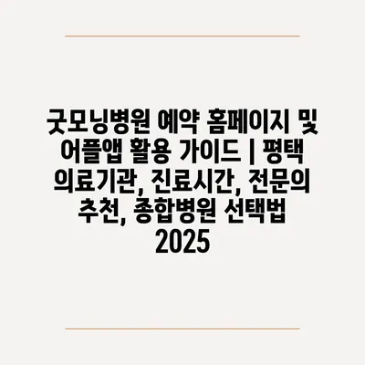 굿모닝병원 예약 홈페이지 및 어플앱 활용 설명서 | 평택 의료기관, 진료시간, 전연락 추천, 종합병원 선택법 2025