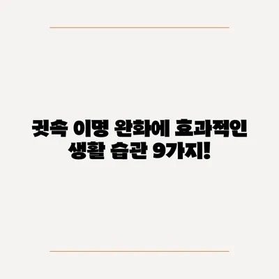 귓속 이명 원인 완화를 위한 생활 습관 9가지를 알아보고, 증상을 완화하는 방법에 대해 알아봅니다. 스트레스 관리, 소음 회피, 규칙적인 운동 등 다양한 팁을 제공합니다.