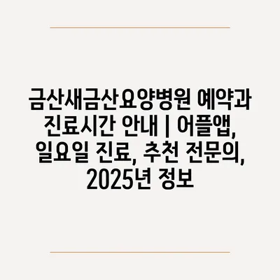 금산새금산요양병원 예약과 진료시간 공지 | 어플앱, 일요일 진료, 추천 전연락, 2025년 정보에 대해 자주 묻는 질문 TOP 5