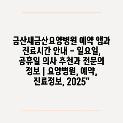 금산새금산요양병원 예약 앱과 진료시간 공지 – 일요일, 공휴일 의사 추천과 전연락 정보 | 요양병원, 예약, 진료정보, 2025에 대해 자주 묻는 질문 TOP 5