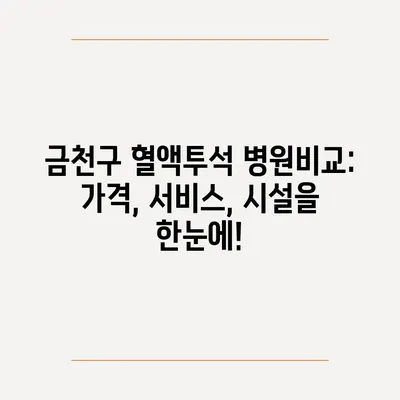 금천구 혈액투석 병원비교: 가격, 서비스, 시설을 한눈에!