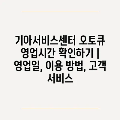 기아서비스센터 오토큐 영업시간 확인하기 | 영업일, 이용 방법, 고객 서비스