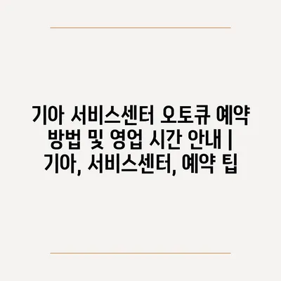 기아 서비스센터 오토큐 예약 방법 및 영업 시간 공지 | 기아, 서비스센터, 예약 팁 에 대해 자주 묻는 질문 TOP 5