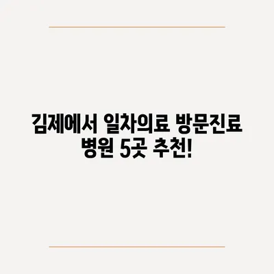 김제에서 일차의료 방문진료 병원 5곳 추천!