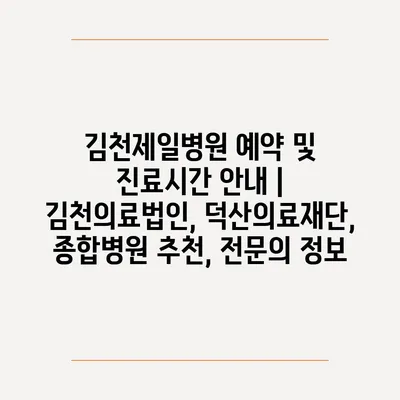 김천제일병원 예약 및 진료시간 공지 | 김천의료법인, 덕산의료재단, 종합병원 추천, 전연락 정보 에 대해 자주 묻는 질문 TOP 5