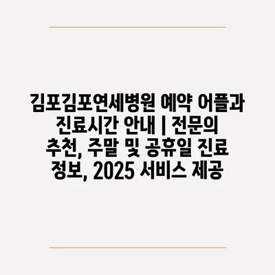 김포김포연세병원 예약 어플과 진료시간 공지 | 전연락 추천, 주말 및 공휴일 진료 정보, 2025 서비스 제공