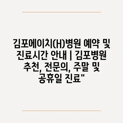 ✅ 김포에이치병원의 예약 및 진료시간을 간편하게 확인해 보세요.