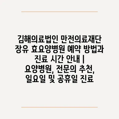 김해의료법인 만전의료재단 장유 효요양병원 예약 방법과 진료 시간 공지 | 요양병원, 전연락 추천, 일요일 및 공휴일 진료 에 대해 자주 묻는 질문 TOP 5