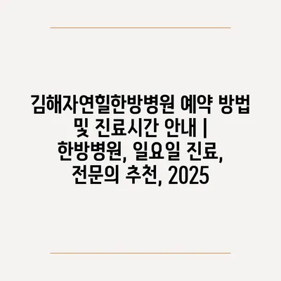 김해자연힐한방병원 예약 방법 및 진료시간 공지 | 한방병원, 일요일 진료, 전연락 추천, 2025 에 대해 자주 묻는 질문 TOP 5