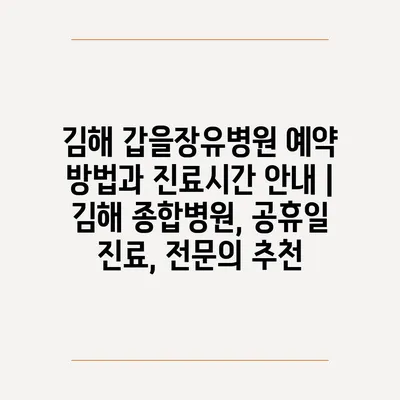 ✅ 김해 갑을장유병원 예약 방법과 진료시간을 자세히 알아보세요.