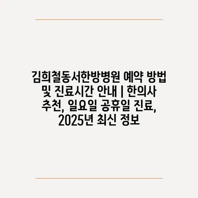 김희철동서한방병원 예약 방법 및 진료시간 공지 | 한의사 추천, 일요일 공휴일 진료, 2025년 최신 정보 에 대해 자주 묻는 질문 TOP 5