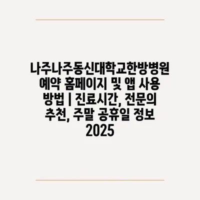 나주나주동신대학교한방병원 예약 홈페이지 및 앱 사용 방법 | 진료시간, 전연락 추천, 주말 공휴일 정보 2025에 대해 자주 묻는 질문 TOP 5