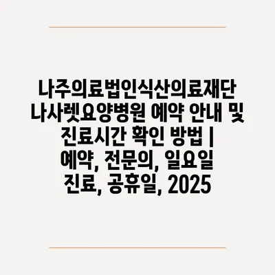 나주의료법인식산의료재단 나사렛요양병원 예약 공지 및 진료시간 확인 방법 | 예약, 전연락, 일요일 진료, 공휴일, 2025 에 대해 자주 묻는 질문 TOP 5