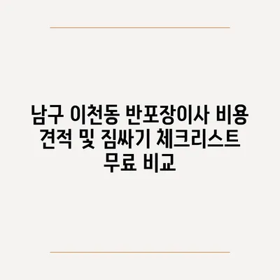 💡 남구 이천동의 반포장이사 비용을 쉽게 비교해보세요. 💡