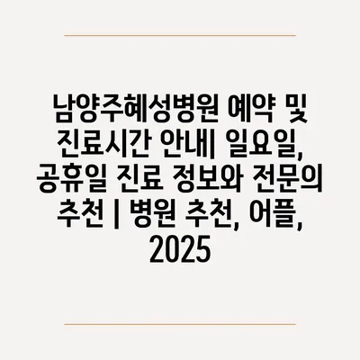 남양주혜성병원 예약 및 진료시간 공지| 일요일, 공휴일 진료 정보와 전연락 추천 | 병원 추천, 어플, 2025 에 대해 자주 묻는 질문 TOP 5