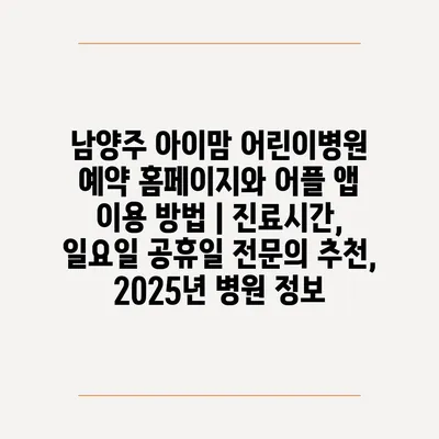 남양주 아이맘 어린이병원 예약 홈페이지와 어플 앱 이용 방법 | 진료시간, 일요일 공휴일 전연락 추천, 2025년 병원 정보 에 대해 자주 묻는 질문 TOP 5