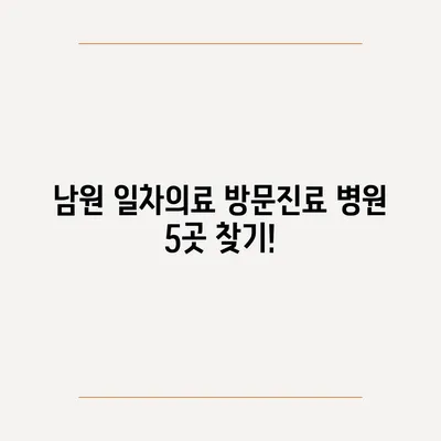 남원에서 일차의료 방문진료 병원을 찾는 방법과 조건, 제공 서비스에 대해 자세히 알아보세요. 거동이 불편한 환자에게 적합한 의료 서비스 안내.