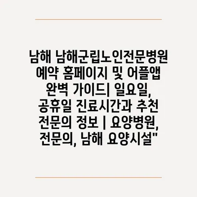 ✅ 남해군립노인전문병원 예약 방법과 진료시간을 자세히 알아보세요.