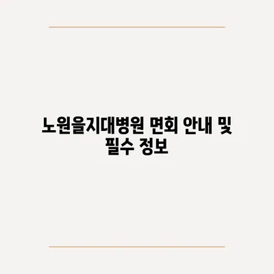 💡 노원을지대병원 면회 규정과 절차를 자세히 알아보세요. 💡