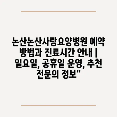 ✅ 논산사랑요양병원의 진료시간과 예약 방법을 지금 바로 알아보세요.