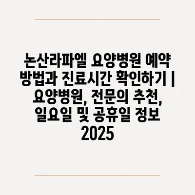 논산라파엘 요양병원 예약 방법과 진료시간 확인하기 | 요양병원, 전연락 추천, 일요일 및 공휴일 정보 2025 에 대해 자주 묻는 질문 TOP 5