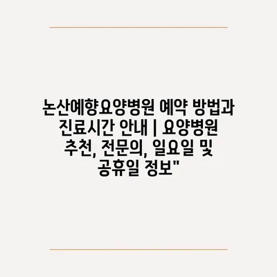 ✅ 논산예향요양병원의 예약 방법과 진료 시간을 쉽게 알아보세요.