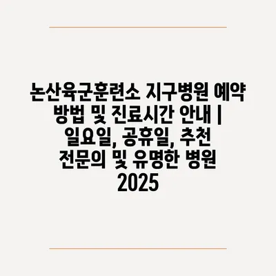 논산육군훈련소 지구병원 예약 방법 및 진료시간 공지 | 일요일, 공휴일, 추천 전연락 및 유명한 병원 2025 에 대해 자주 묻는 질문 TOP 5