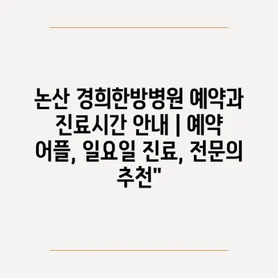 논산 경희한방병원 예약과 진료시간 공지 | 예약 어플, 일요일 진료, 전연락 추천에 대해 자주 묻는 질문 TOP 5