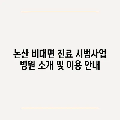논산에는 여러 병원이 비대면 진료 시범사업에 참여하고 있으며, 각 병원의 구체적인 정보는 다음과 같습니다. 이 표는 논산 지역에서 비대면 진료를 제공하는 주요 병원의 목록입니다.