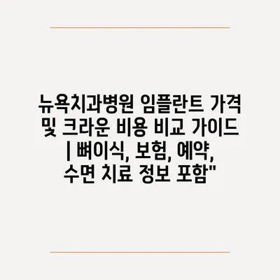 뉴욕치과병원 임플란트 가격 및 크라운 비용 비교 설명서 | 뼈이식, 보험, 예약, 수면 치료 정보 포함