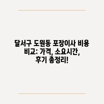 달서구 도원동 포장이사 비용 비교: 가격, 소요시간, 후기 총정리!