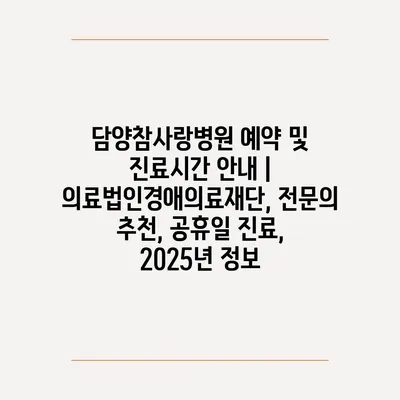 담양참사랑병원 예약 및 진료시간 공지 | 의료법인경애의료재단, 전연락 추천, 공휴일 진료, 2025년 정보 에 대해 자주 묻는 질문 TOP 5