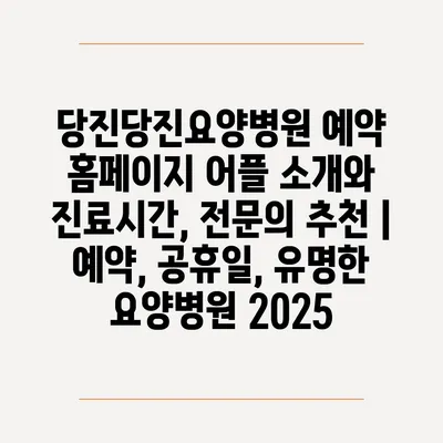 당진당진요양병원 예약 홈페이지 어플 소개와 진료시간, 전연락 추천 | 예약, 공휴일, 유명한 요양병원 2025에 대한 내용을 공지합니다.