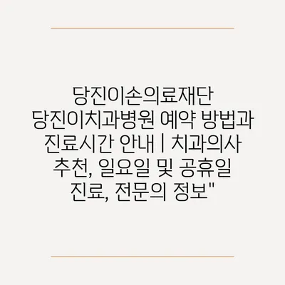 당진이손의료재단 당진이치과병원 예약 방법과 진료시간 공지 | 치과의사 추천, 일요일 및 공휴일 진료, 전연락 정보에 대해 자주 묻는 질문 TOP 5