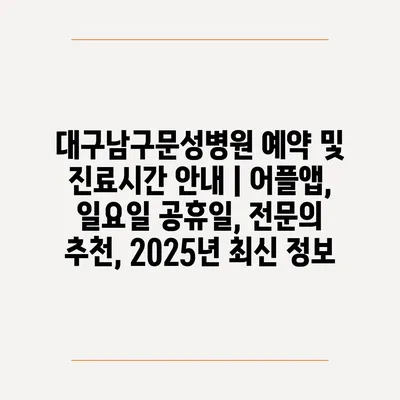 대구남구문성병원 예약 및 진료시간 공지 | 어플앱, 일요일 공휴일, 전연락 추천, 2025년 최신 정보