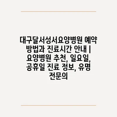 대구달서성서요양병원 예약 방법과 진료시간 공지 | 요양병원 추천, 일요일, 공휴일 진료 정보, 유명 전연락 에 대해 자주 묻는 질문 TOP 5